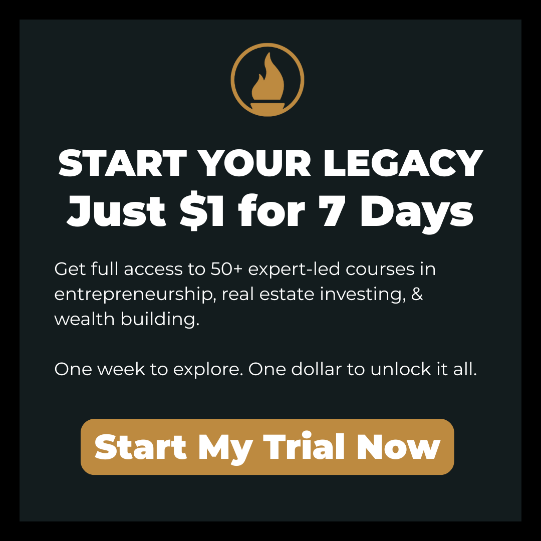 Right now, we're offering you EVERY course on Legacy Wealth Academy for 1 week for only $1 -- that's right, ONE DOLLAR. Click theĀ button below to start building Legacy Wealth today!